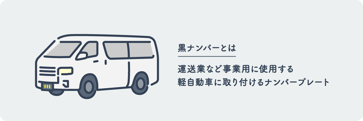黒ナンバーとは、運送業など事業用に使用する軽自動車に取り付けるナンバープレートのことです。正式には「事業用軽貨物自動車」と呼ばれ、黒地に黄色の文字が特徴です。