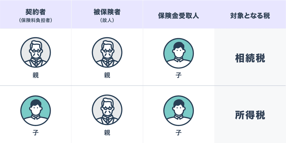 この契約者を「親」にするか「子」にするかで、将来受け取る保険金にかかる税金の種類が変わる場合があります。