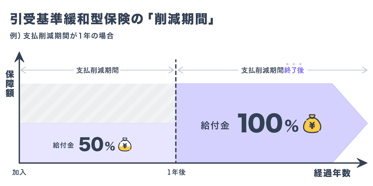 それは加入してから1年以内など、一定の期間内に病気で万が一のことがあった場合、受け取れる保険金が半額(50%)になるというルールです。